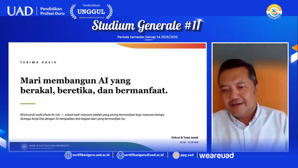Yogyakarta – Di tengah laju pesat perkembangan kecerdasan buatan, kampus kembali menjadi ruang refleksi kritis. Studium Generale #11 yang digelar pada Jumat (24/04/2026) menghadirkan diskursus mendalam tentang etika dan masa depan Artificial Intelligence (AI). Kegiatan hasil kolaborasi LPP dan LPSI ini tidak sekadar membahas teknologi, tetapi juga menimbang arah kemanusiaan di era digital.
