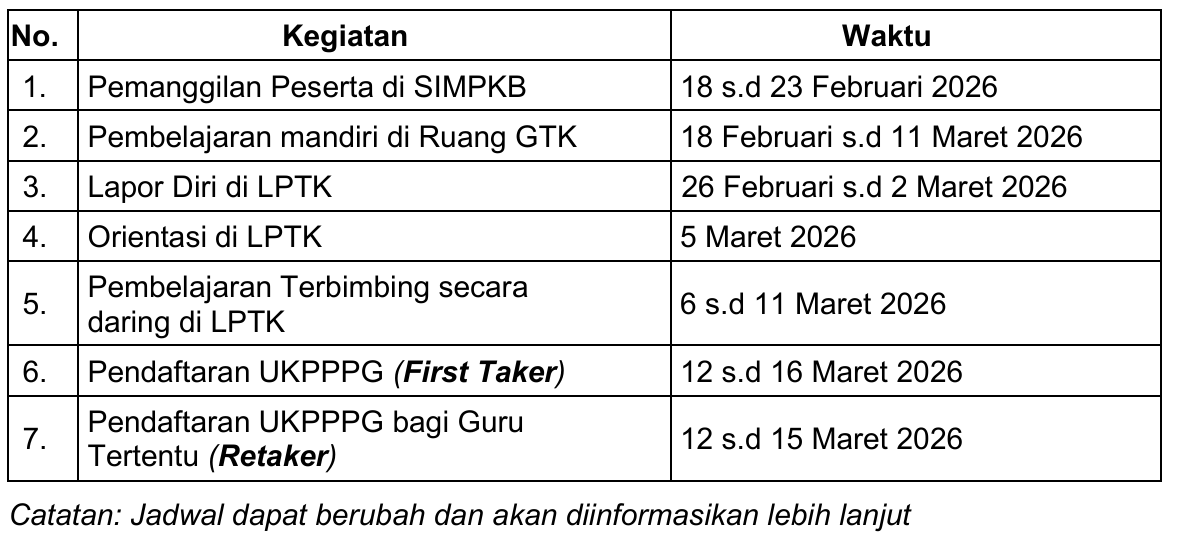 Pelaksanaan PPG bagi Guru Tertentu Tahap 1 2026