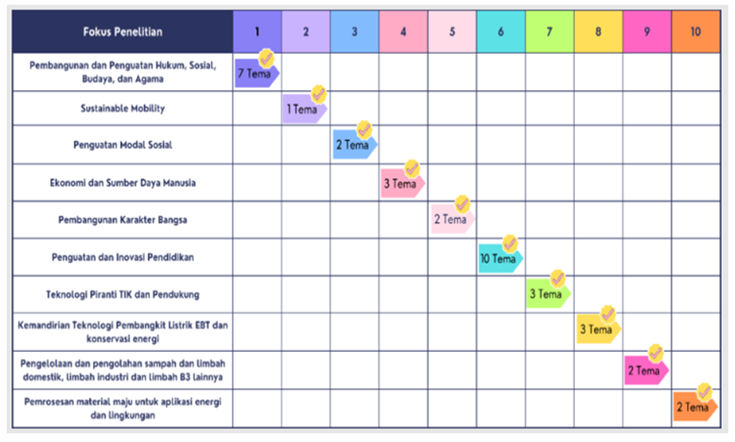 Di PS PPG, terdapat tiga tema riset utama yang menjadi fokus luaran PS. Ketiga tema tersebut meliputi pembelajaran transformatif, inovatif, dan berbasis nilai Islam yang terbagi dalam sub tema.